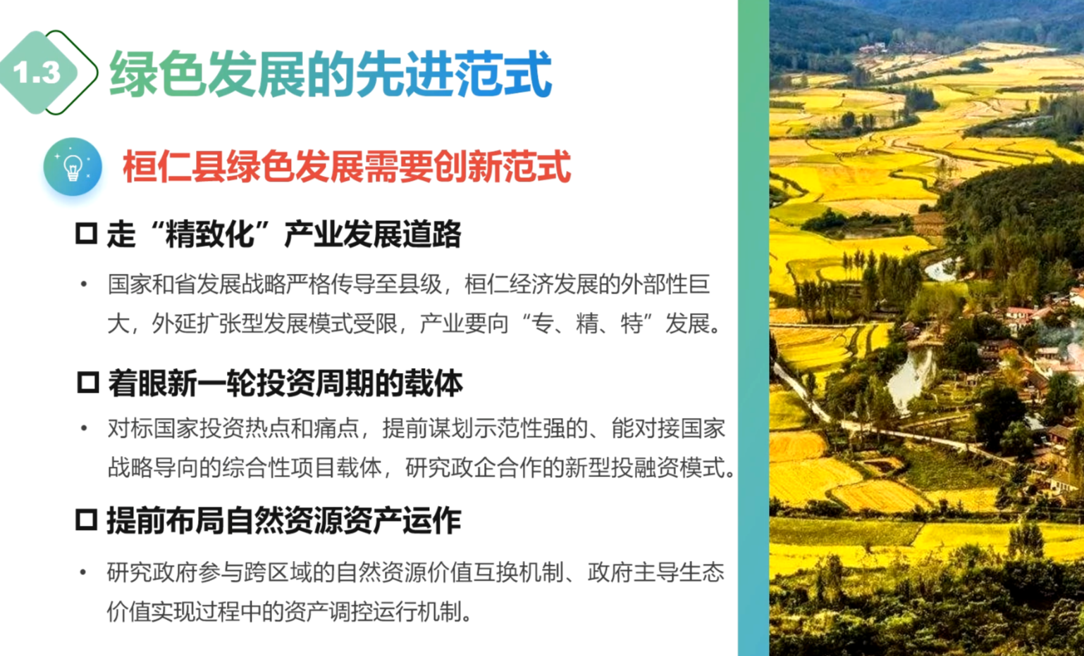 专题研究为建立水源地“安全保护网”提供整体性解决方案,为实现辽宁省“七个新突破”提供全方位生态担当,为建设本溪市“七个总推动”提供本土化实践路径,为促进桓仁县“高质量发展”提供系统性实施计划。秉承“水源大保护、经济大发展、城乡大变样”协同促进的思路,围绕“四个转变”:从生态保护型向生态价值型转变,从加工生产型向服务创新型转变,从单一工程型向综合效益型转变,从零散化实施向全过程管理转变,将桓仁县打造成为全省生态文明建设的主战场,辽宁绿色高质量发展的主力军,辽东绿色经济区标杆区、示范区,实现桓仁县全域、全面、全过程、全社会的绿色发展。