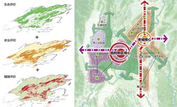 《桂林市国土空间规划(2020-2035)》基于对桂林“世界级旅游资源、区域中心城市、文化资源富集区”的特征判断,探索新时代桂林“高质量发展、高品质生活、高水平治理”的生态文明新模式,以“枢纽桂林、价值重塑”为理念,强调衔接体系、精准指标、战略布局、统筹管控、优化格局、要素配置等城市发展策略,重点解决城市定位、发展模式、空间组织、综合交通、生态保护、旅游发展等发展与保护方面的重大问题,提出将桂林建设成为世界一流的国际旅游胜地、生态宜居的山水名城、可持续发展的创新产业高地和开放融合的区域门户枢纽。